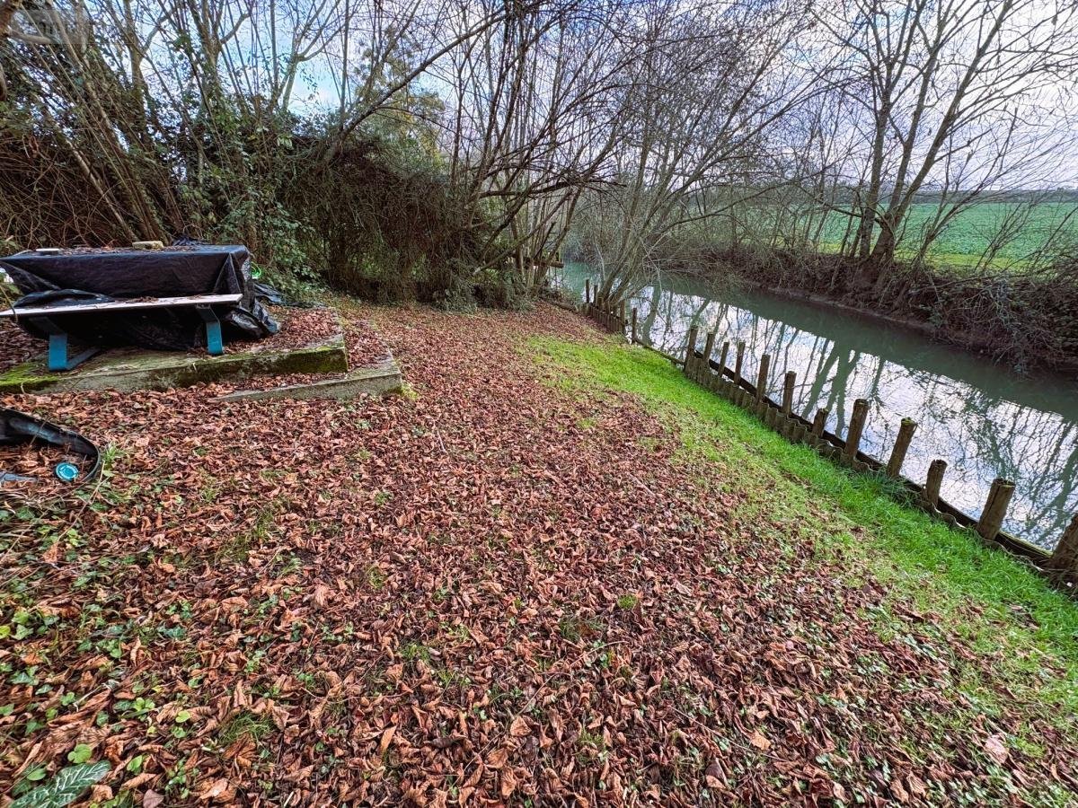 Superbe terrain sur l'arrière de 1823m² avec vue dégagée. Il offre un accès rivière sécurisé pour les enfants et une table pour magner au bord de l'eau.