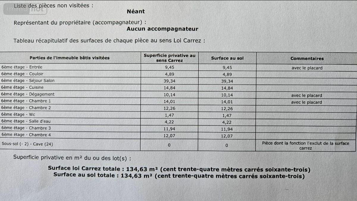 Appartement T5 à rénover d’une surface habitable de 135m2 environ composé d’une entrée et couloir avec placards desservant une cuisine aménagée ainsi qu'un salon séjour de 40m2, quatre chambres et une salle d’eau, wc. Huisseries pvc. Cave. 6ème étage avec ascenseur.