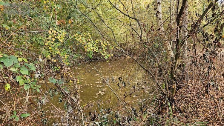 Peupleraie de plus d'un hectare avec abri à caravane et pièce d'eau non cadastrés.
