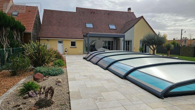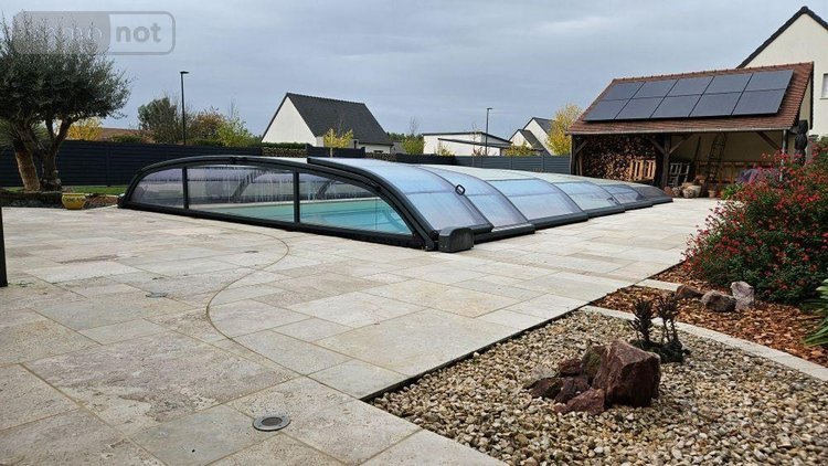 Maison achevée courant 2009 d'une surface habitable de 227m2, composée de plain-pied d'un hall d'entrée desservant une cuisine aménagée et équipée ouverte sur salon séjour avec poêle à bois, une chambre parentale avec salle de bain, dressing, un cellier et wc. Un garage double et buanderies. Un palier mezzanine à l'étage distribuant quatre chambres et une salle d'eau, wc. Garage distinct avec bûcher. Chauffage par plancher chauffant avec pompe à chaleur récente. Piscine chauffée 5 x 10 avec dôme motorisé, clôture récente, terrasses de 100m2 en travertin, production photovoltaïque récente. Pergola. Belle parcelle aménagée de 1108m2.