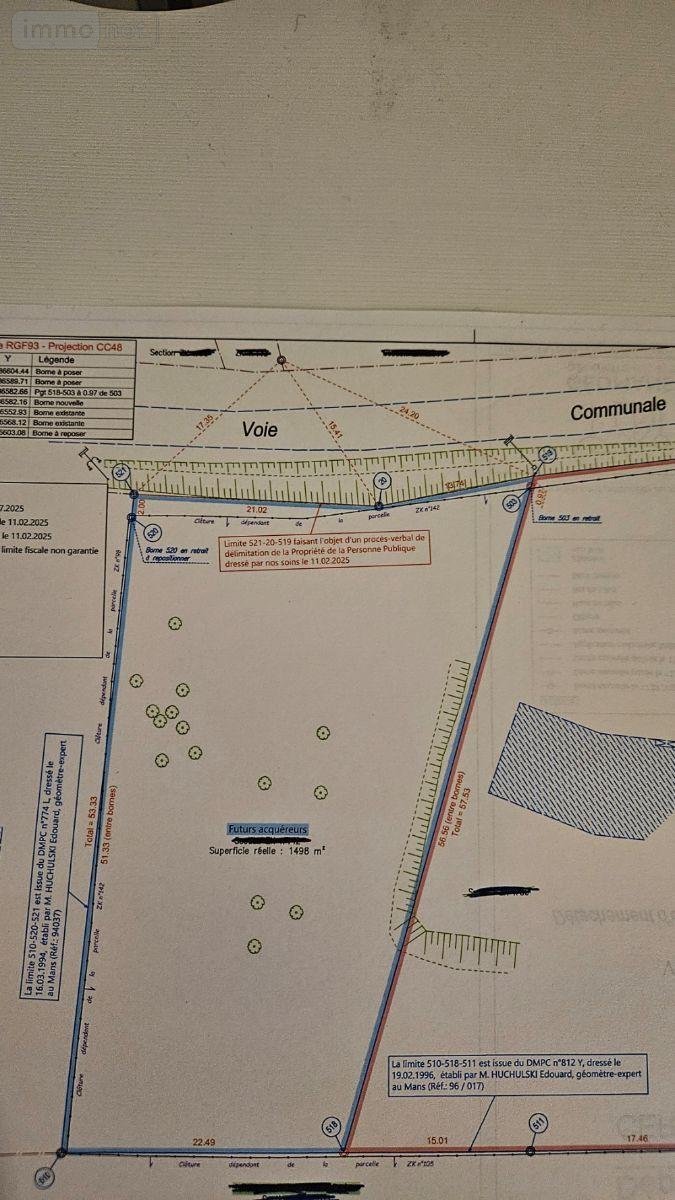 Terrain à bâtir non viabilisé d'une sur surface de 1500m2, 30 mètres de façade, prévoir assainissement autonome. Réseaux eau, électricité, fibre à proximité.
