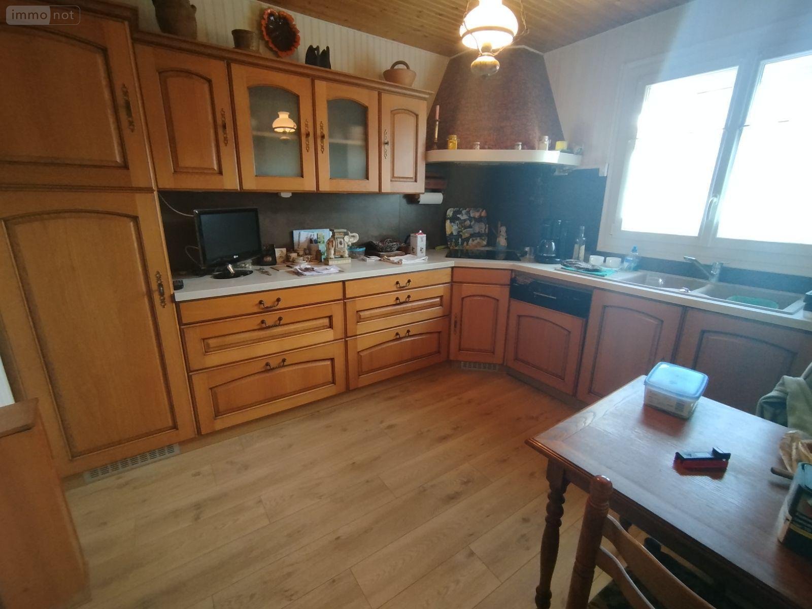 Distribution : Entrée avec placards, salon-séjour avec cheminée, cuisine séparée, dégagement couloir, quatre chambres, salle d'eau, wc séparés.