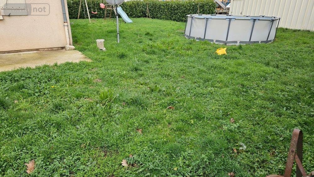 Maison « Geps » achevée courant 1978 et rénovée courant 2020, d'une surface habitable de 95m2 environ, composée de plain-pied d'une entrée desservant une cuisine aménagée et équipée ouverte sur séjour, trois chambres et une salle d'eau, wc, chaufferie. Un garage préfabriqué béton de 28m2 couvert tôle fibrociment. Chauffage central au gaz de ville récent, huisseries pvc de 2010, tout à l'égout. Belle parcelle de 1000m2. Maison libre le 15 août 2026.