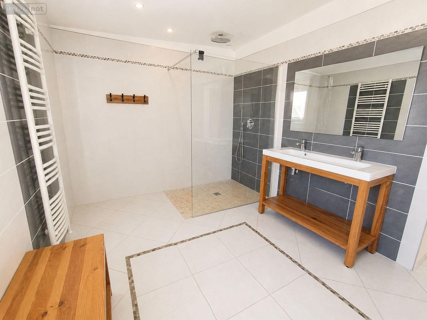 Une salle de bains avec douche & baignoire.