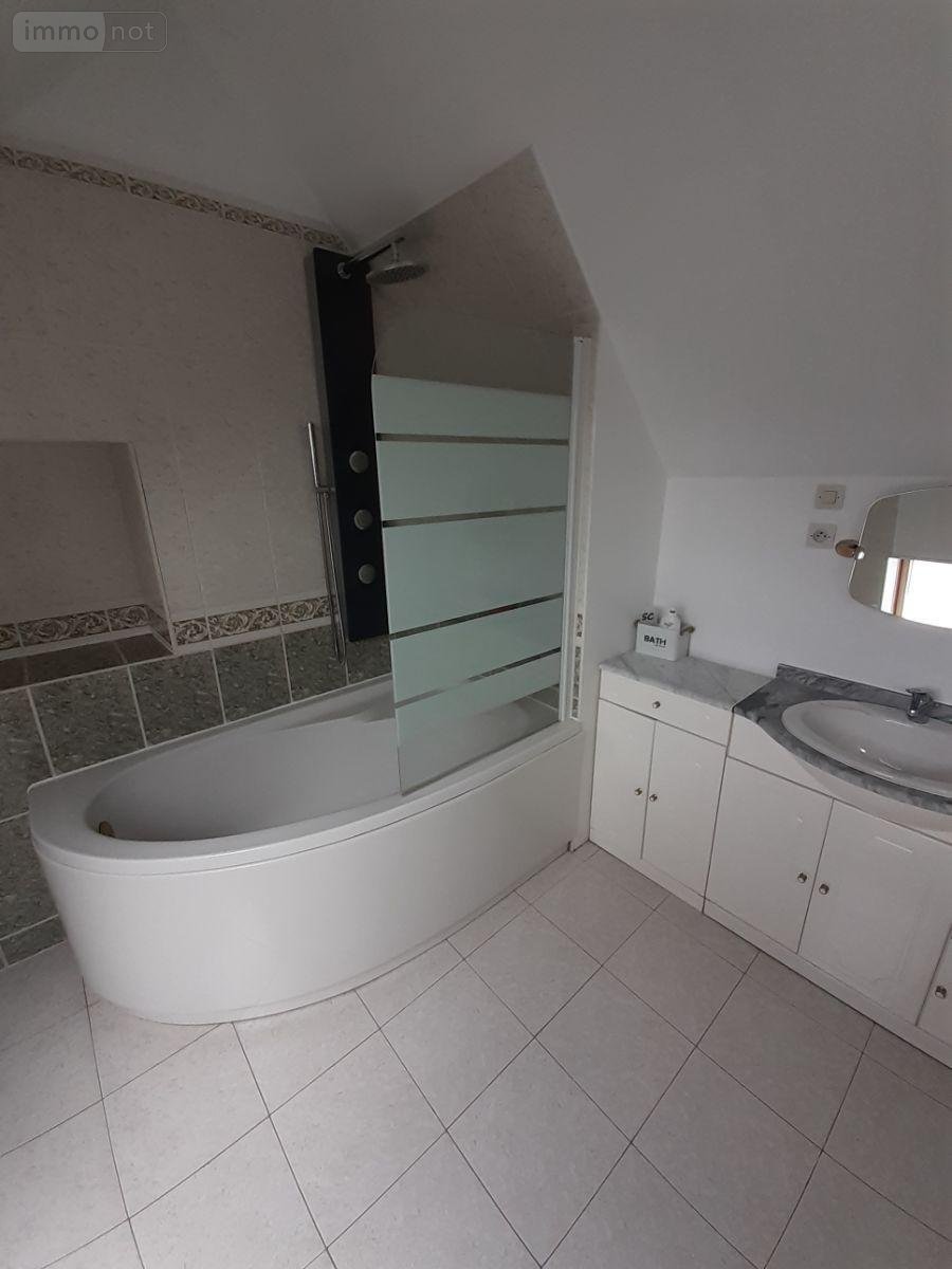 Une seconde partie composée d'un palier, d'une salle de bain avec douche et baignoire, trois chambres et wc.