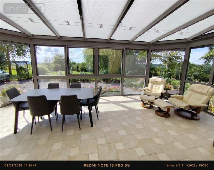 L'entrée dans la maison nse fait par un couloir large avec rangements, donnant sur une cuisine aménagée-équipée, s'ouvrant sur une magnifique véranda fermée - chauffée donnant sur le terrain et la nature environnante; buanderie; bureau; salle de bain neuve avec douche à l'Italienne, pièce de jeu (billard); chaufferie