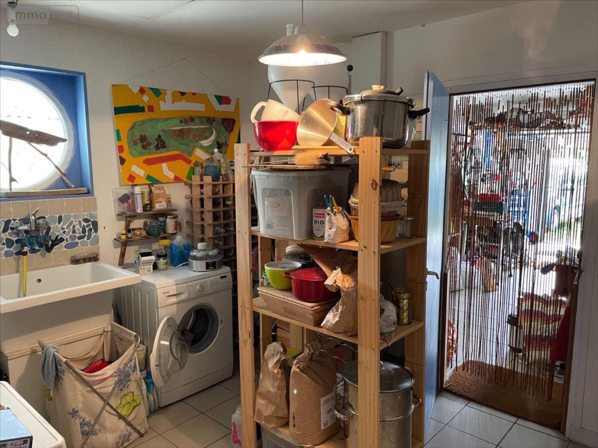 ouverte équipée sur la pièce de vie de 70m2 avec un poêle à bois central. Une arrière-cuisine / buanderie /
