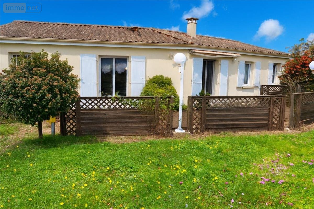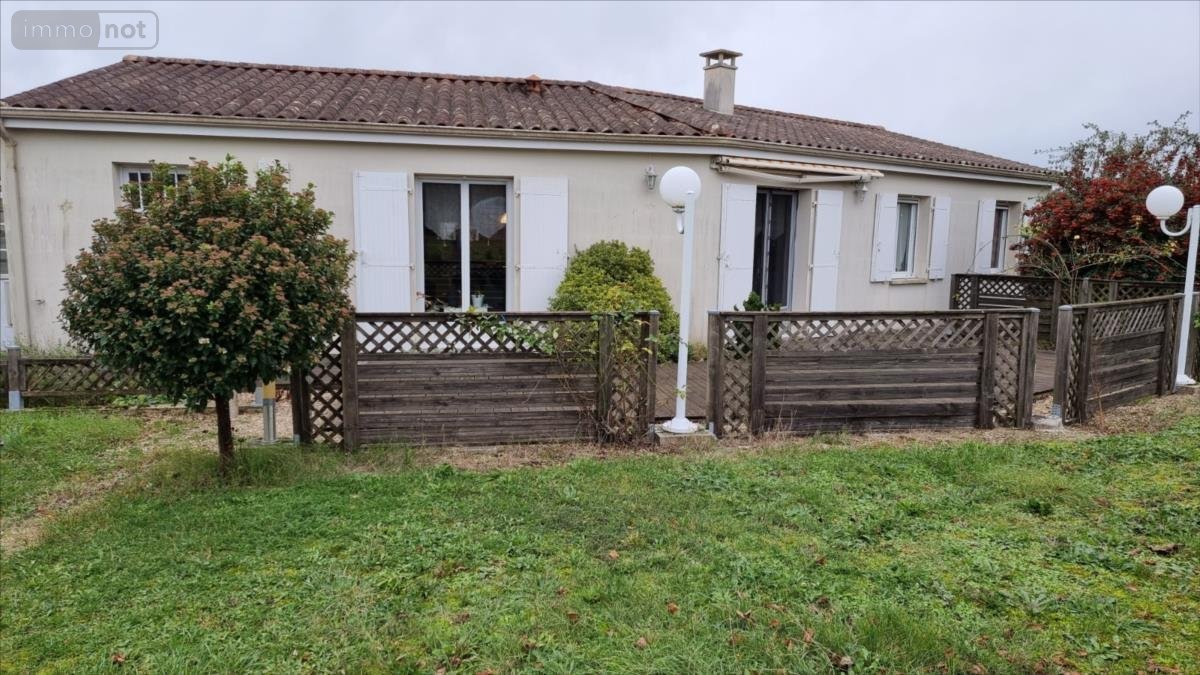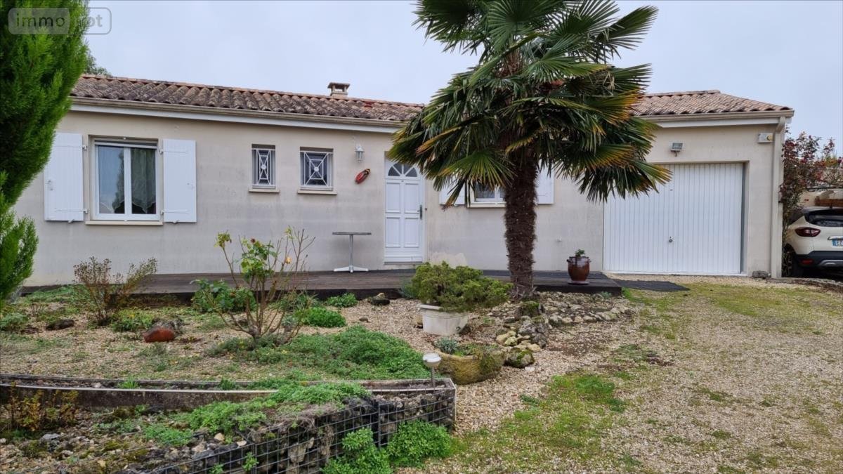 Maison de plain-pied individuelle composée de : 3 chambres, salon-séjour-cuisine aménagée, 2 salles d'eau, 2 wc. Pompe à chaleur, économique en énergie. Terrain : 2565 m². Proche JONZAC à 8 minutes.