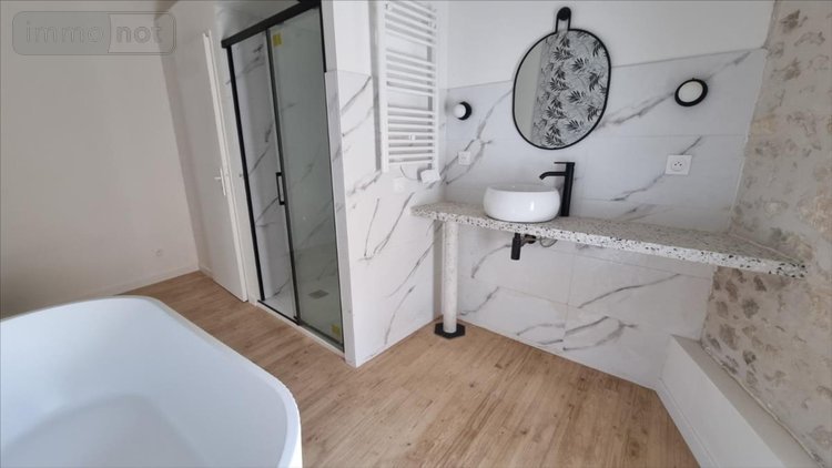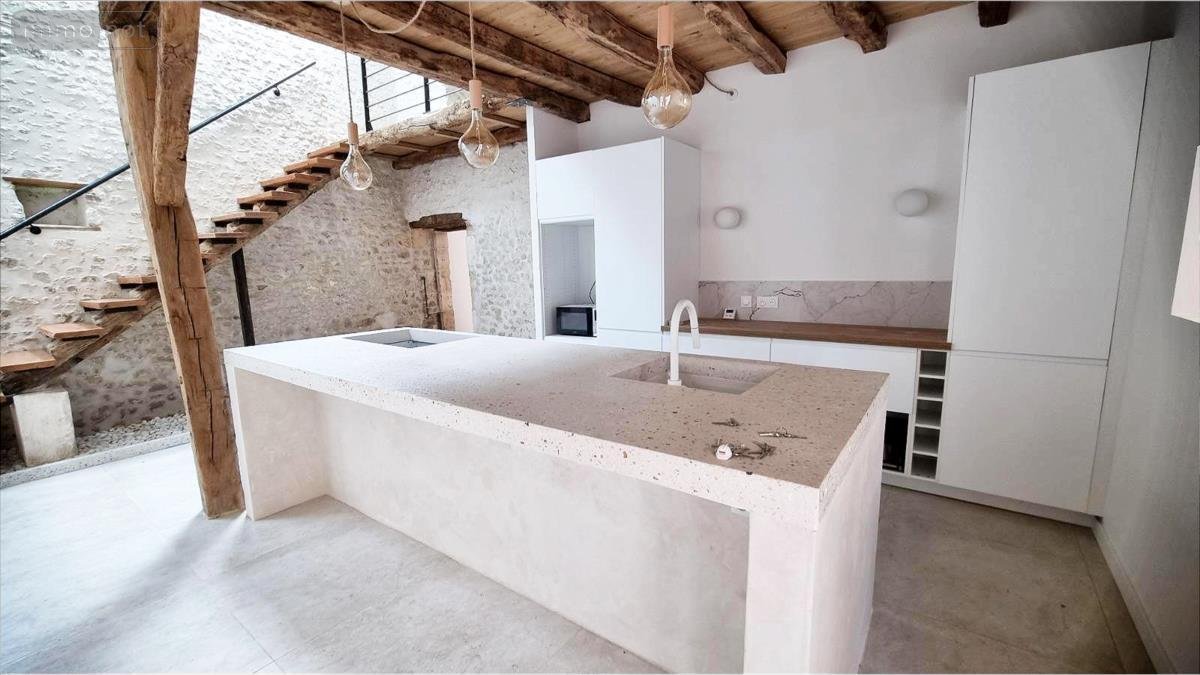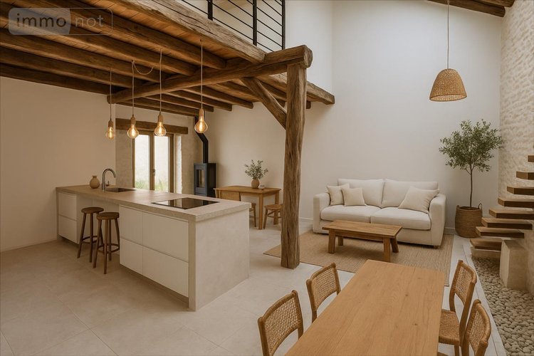 Maison en pierre, composée de 4 chambres dont une suite parentale, bel espace de vie avec cuisine aménagée, garage, chauffage économique, jardinet. Restaurée, au calme, commerces et écoles à pied.