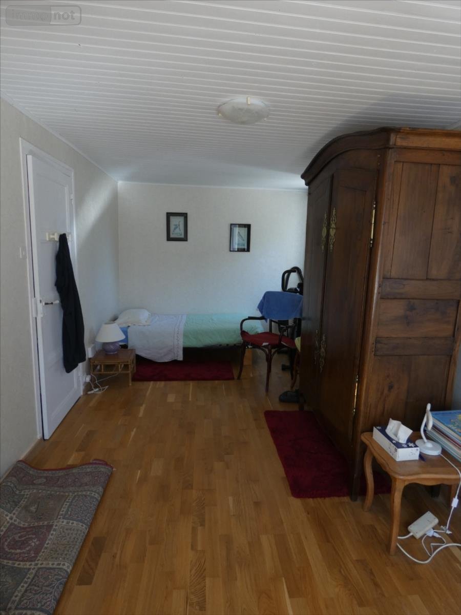 - au premier étage: côté ouest, une chambre et une salle de bains avec wc, côté Est: deux chambres, un bureau, salle d'eau avec wc,