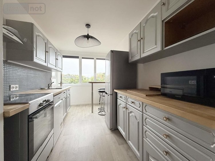 Au deuxième étage d'un immeuble au pied des commerces, du lycée et du parc de Bréquigny, Appartement 4 chambres rénové de 102m² avec balcon OUEST, cave de 15m² et un stationnement privatif.