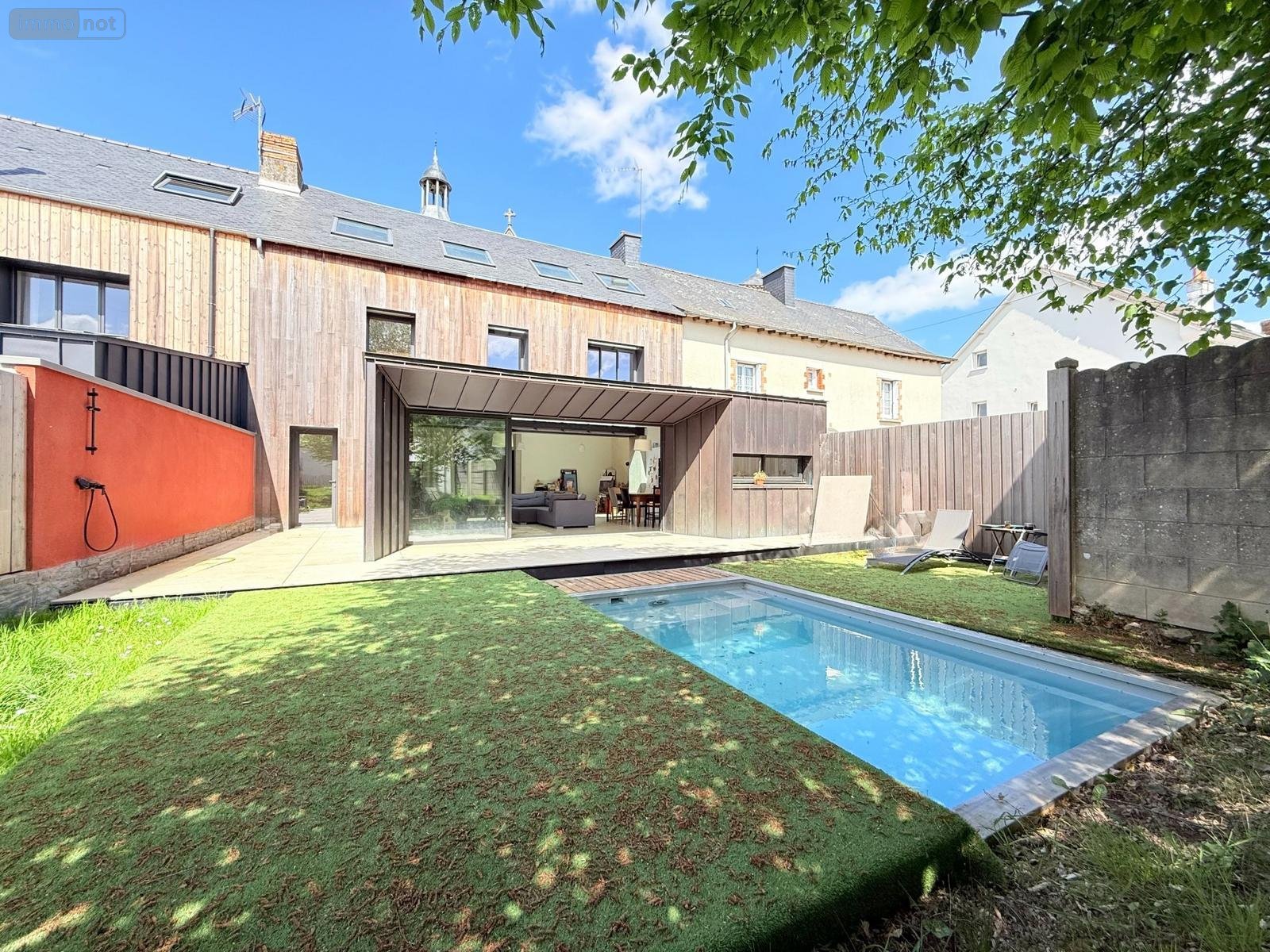 Située au pied de l'Eglise de la Mézière et des commerces, ancienne bâtisse de 1800 rénovée et étendue avec des matériaux de qualité, Maison de 172m² sur un Terrain SUD de 467m² avec 4 chambres dont une en rez-de-chaussée.