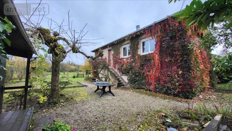 Maison cinq pièces comprenant :-au sous-sol (complet) : garage, atelier-au rez-de-chaussée surélevé : dégagement, cuisine, salon-séjour, dégagement, trois chambres, salle de bains, wcGrenier au dessus.A l'extérieur : chalet de jardin.Terrain 5a 38ca.
