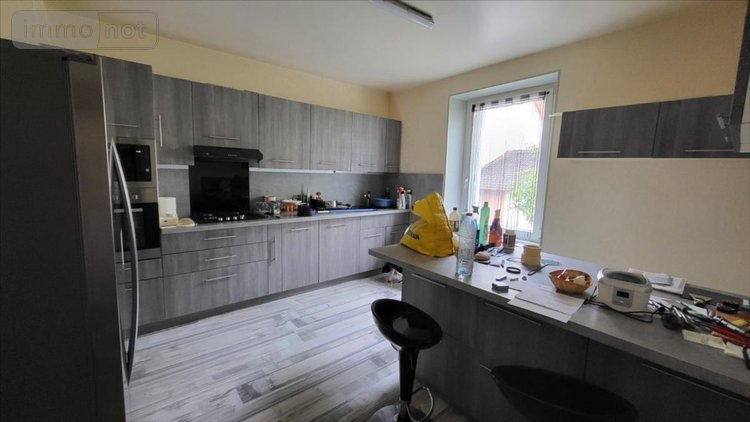 -à l'étage : palier, salon, cuisine équipée récente avec îlot central et réfrigérateur américain,