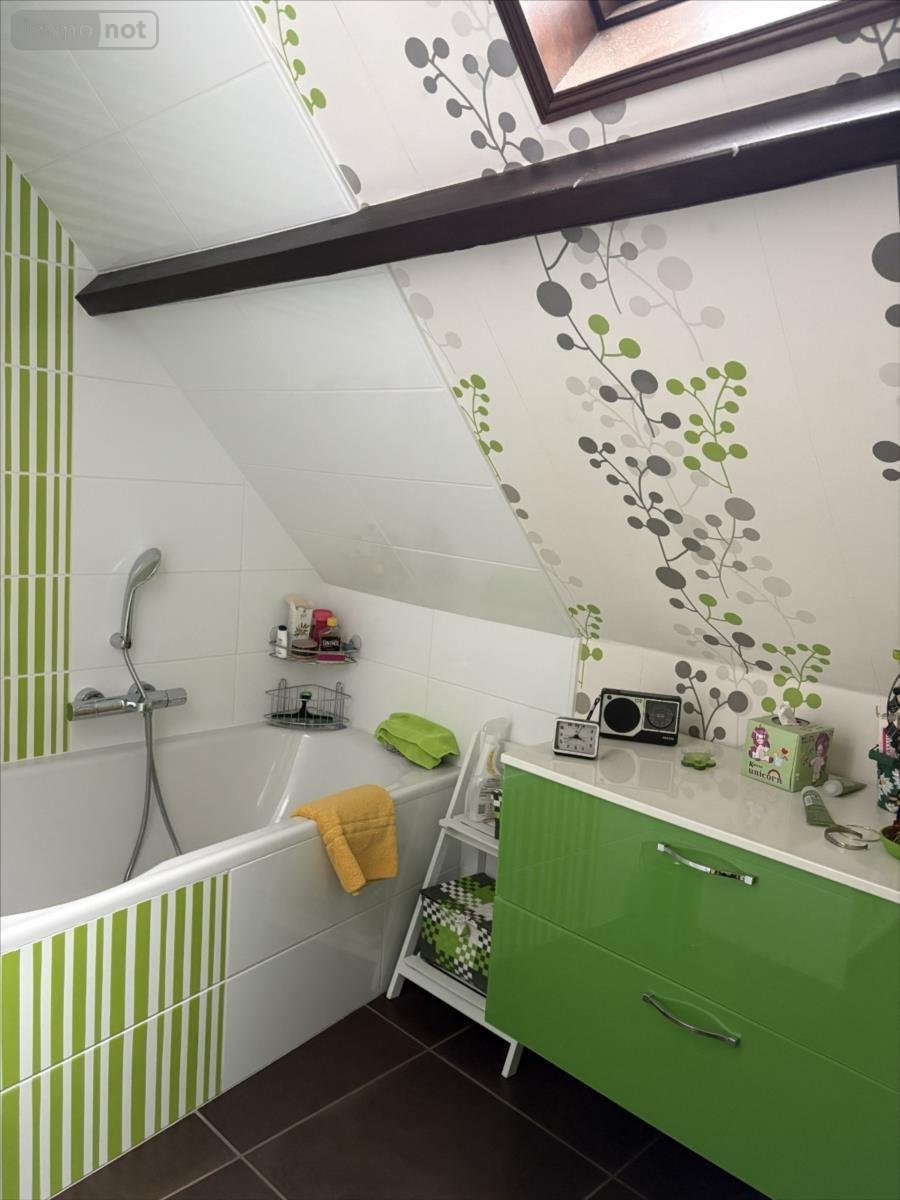 A l'étage, palier ,3 chambres avce rangements, une salle de bain, wc, un bureau. Au sous-sol : garage, buanderie, atelier, cave.Terrain clos.