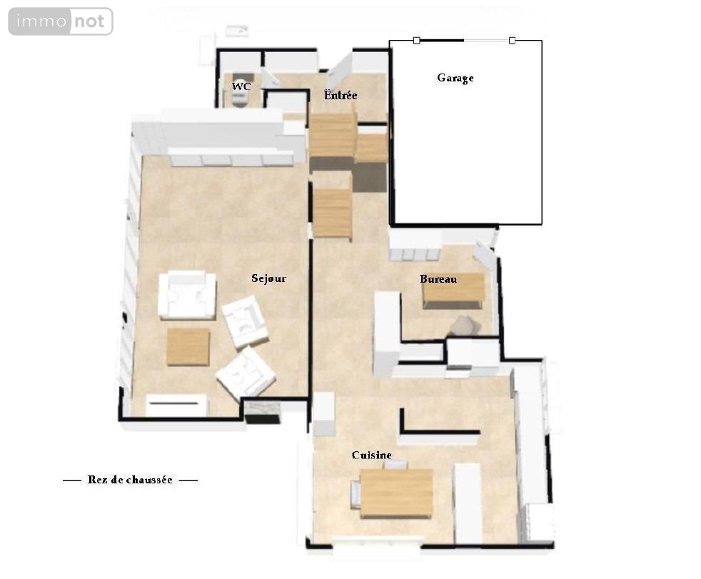 Un bureau et des toilettes (avec lave-mains) complètent cet ensemble au RDC ;