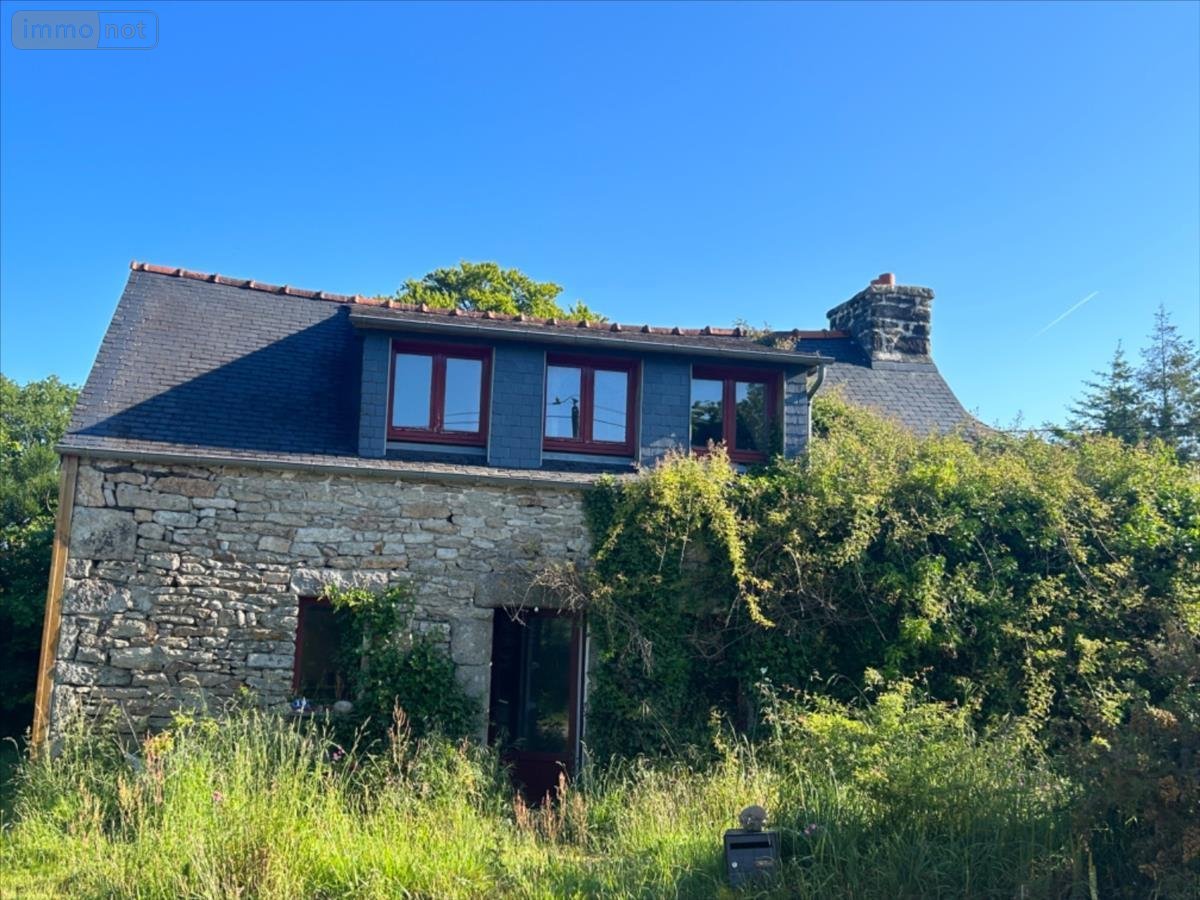 En campagne à proximité de HUELGOAT et de l'axe Lorient Roscoff , une maison en pierres avec un hangar.