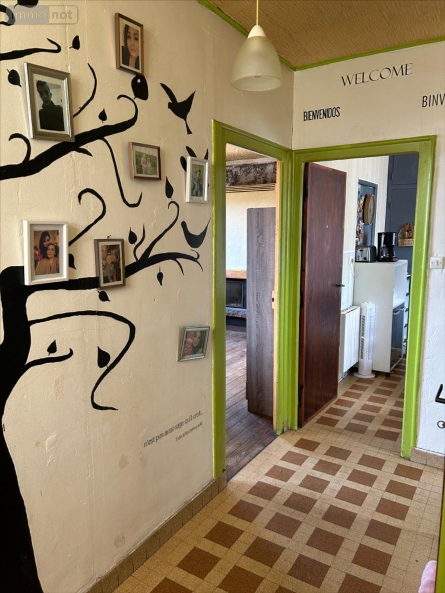 hall avec placard, une salle à manger salon avec cheminée, un cuisine, un wc. A l'étage,