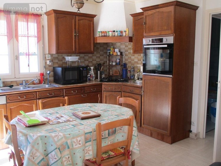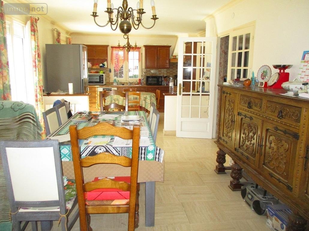 Maison d'habitation sur sous-sol complet comprenant au rez-de-chaussée : Une entrée, un salon-séjour, une cuisine aménagée, une chambre, toilettes et salle de bains. A l'étage : Palier desservant une salle d'eau avec toilettes, trois chambres mansardées dont une avec bureau. Terrasse avec store banne. Terrain de 2597 m².