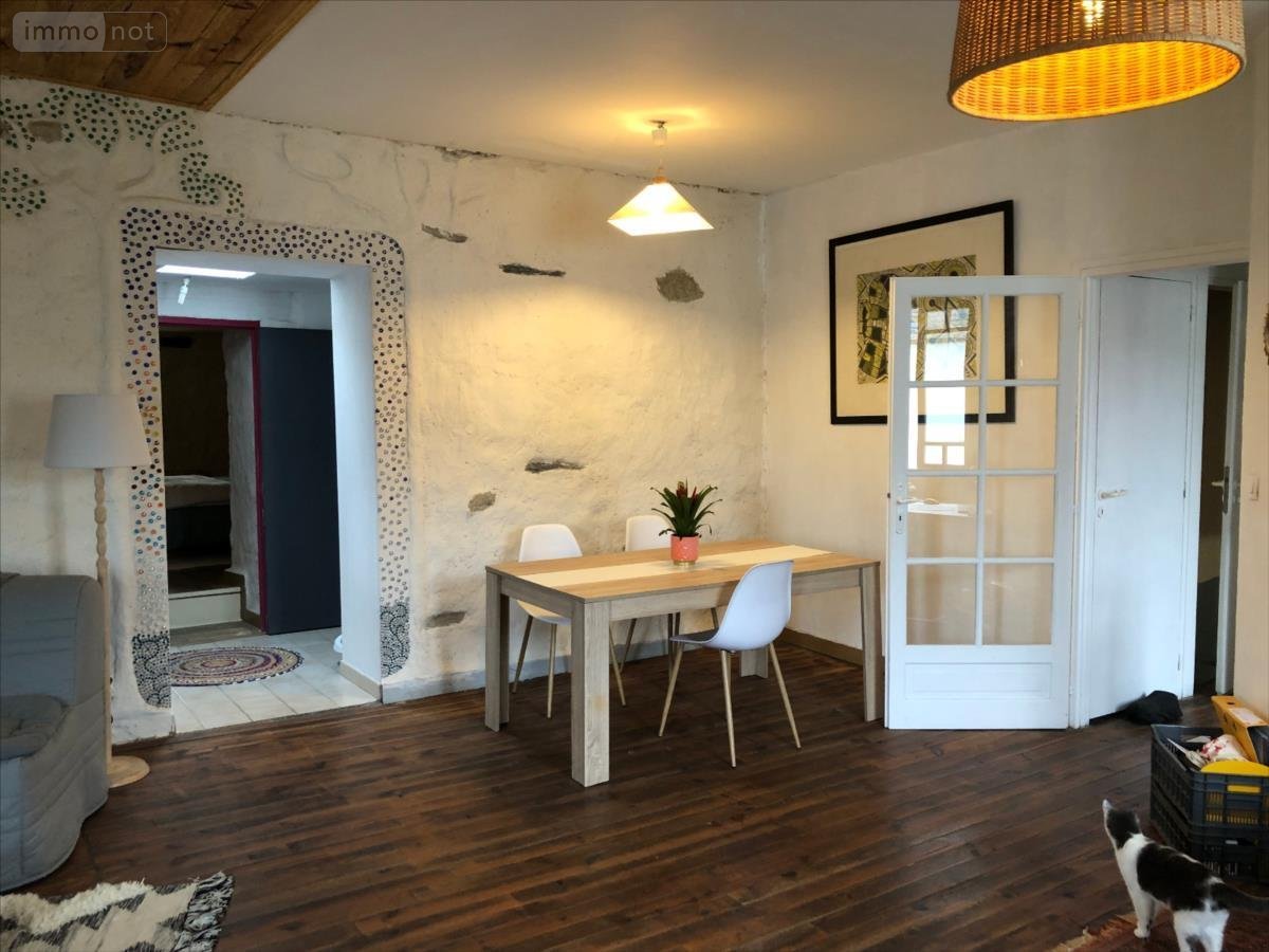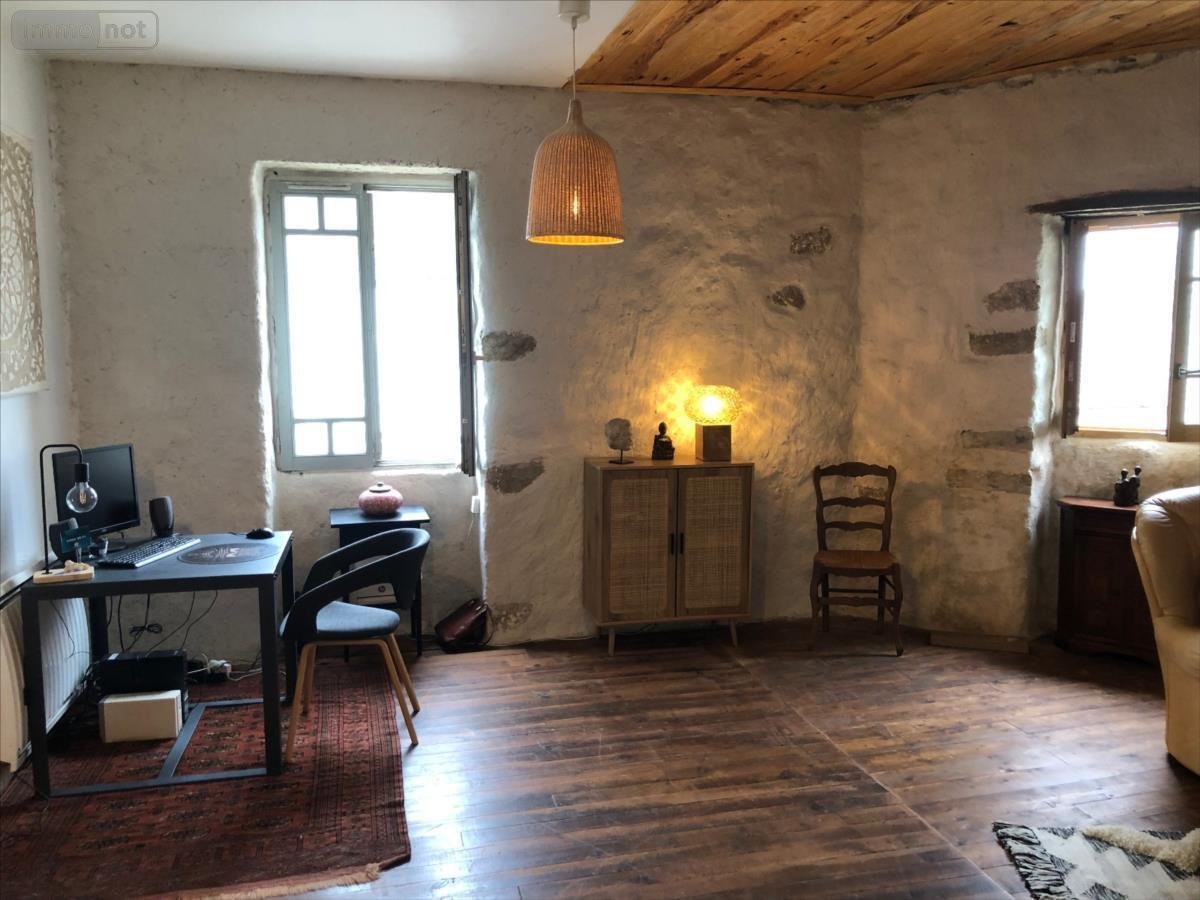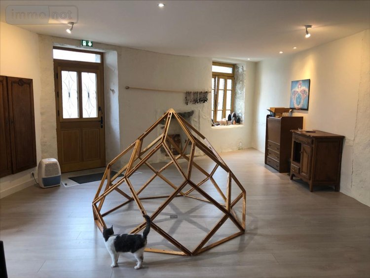 Maison d'habitation rénovée avec goût, idéalement située dans le bourg, proche des commodités, composée au rez de chaussée d'une entrée, deux pièces dont l'une faisant office de boutique, dégagement avec un wc, autre pièce. Au premier étage, une cuisine aménagée et équipée, un beau séjour avec poêle à pellets, deux chambres, une salle de bains avec wc séparé. Grenier au-dessus. Pas d'extérieur.