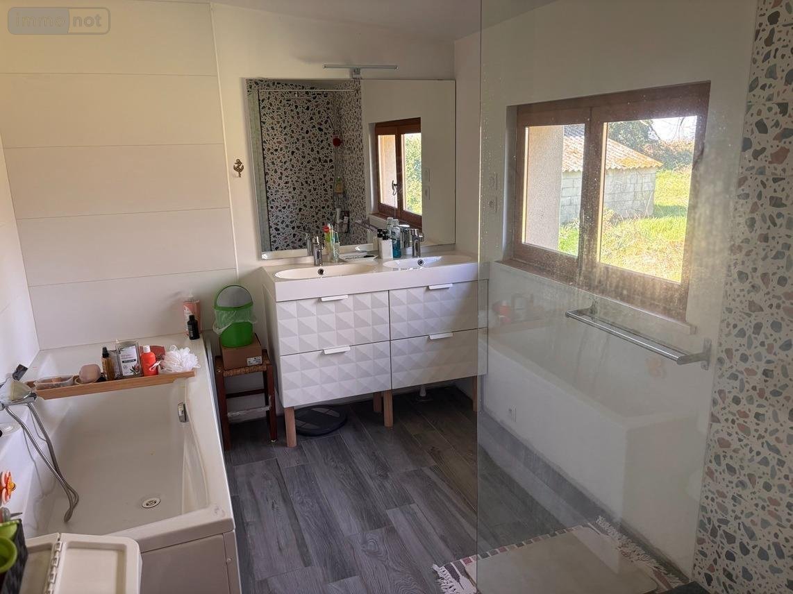 Cette maison en pierre vous comblera par son emplacement calme, son jardin et son agencement : Elle comprend au rez-de-chaussée d'une belle pièce de vie avec poêle à pellets, une cuisine, un bureau, une chambre, un dressing, une salle de bain-douche, toilettes et une buanderie. A l'étage : Palier desservant deux chambres mansardées et une salle d'eau avec toilettes. Terrain de 1321 m² avec un abris de jardin.