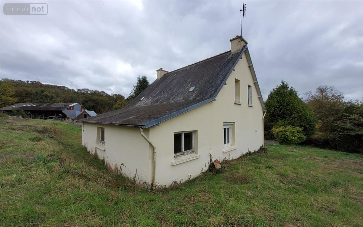 CARNOET, une maison d'habitation en parpaings sous toiture ardoises comprenant :- Au rez-de-chaussée : Entrée, cuisine, salle avec cheminée, chambre, salle de bains, WC, cellier.