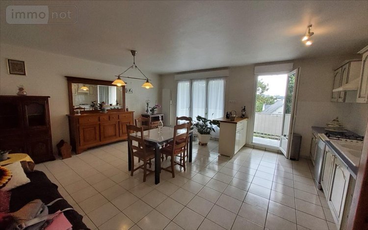 CARHAIX, proche du centre-ville très bel appartement T.4 de 77 m² au 1er étage comprenant :Séjour et coin cuisine aménagée et équipée (grand balcon), couloir (placards), 3 chambres, salle d'eau, WC.