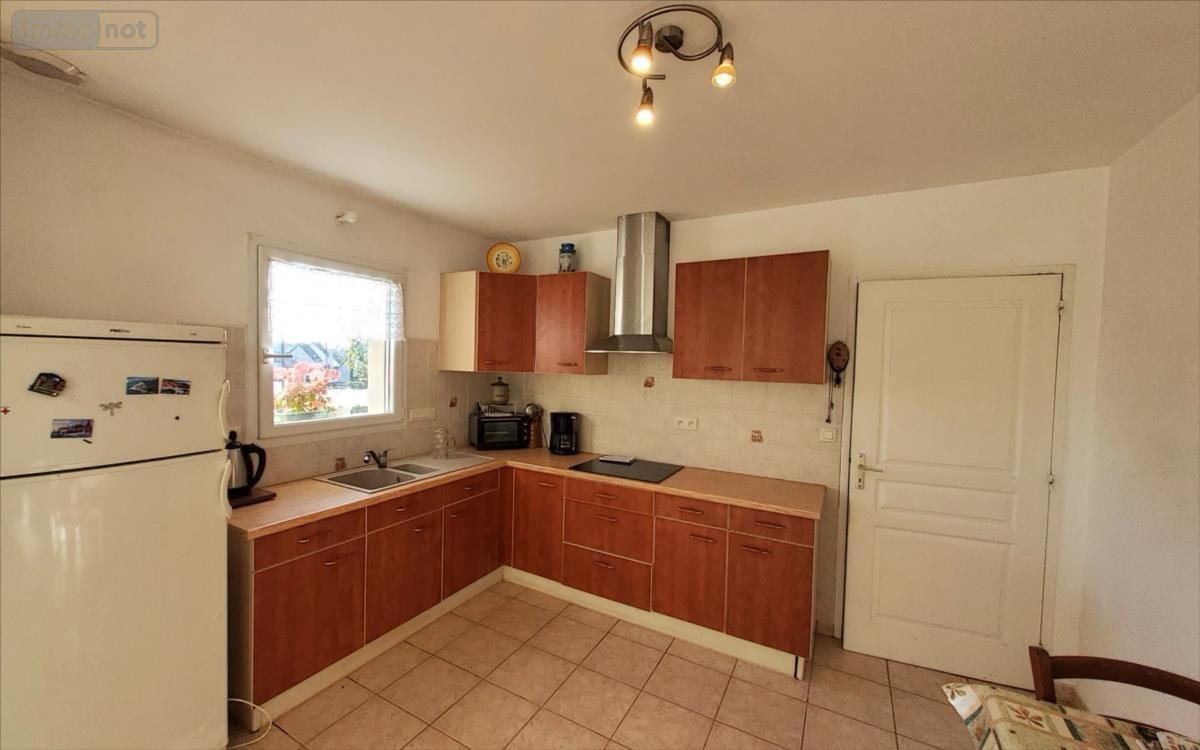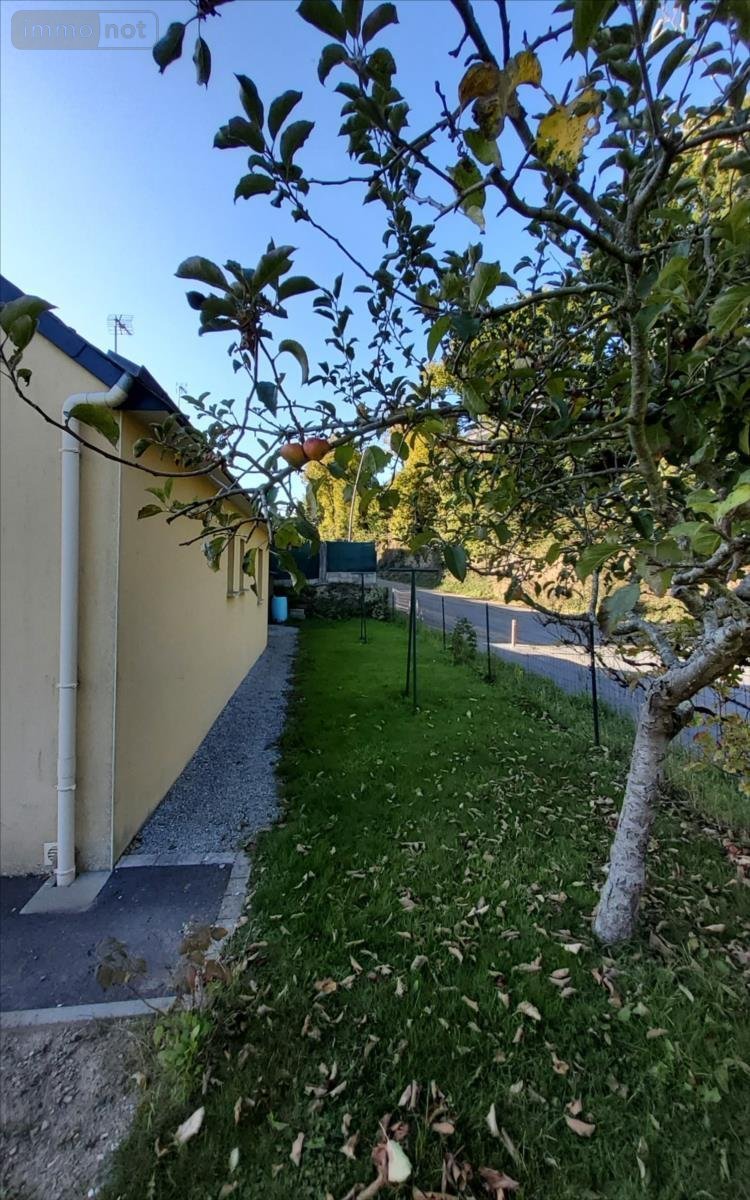 CARHAIX, une maison d'habitation en briques sous toiture ardoises et construction 2009. Maison plain-pied proche des commerces.Pièce de vie ave coin cuisine aménagée et séjour, dégagement, 2chambres, salle d'eau et WC.Garage au pignon avec grenier au-dessus.Terrasse, cour goudronné et terrain clos attenant.