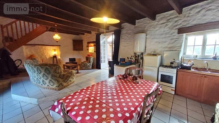 En campagne, dans hameau agréable proche de l'axe Lorient Rsocoff, à 5 minutes du Heulgoat et 10 minutes de Carhaix,Jolie maison en pierres sous ardoises, mitoyenne d'un côté ayant: