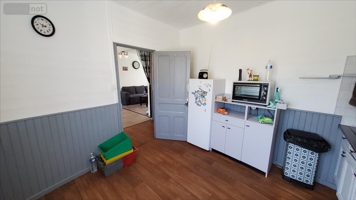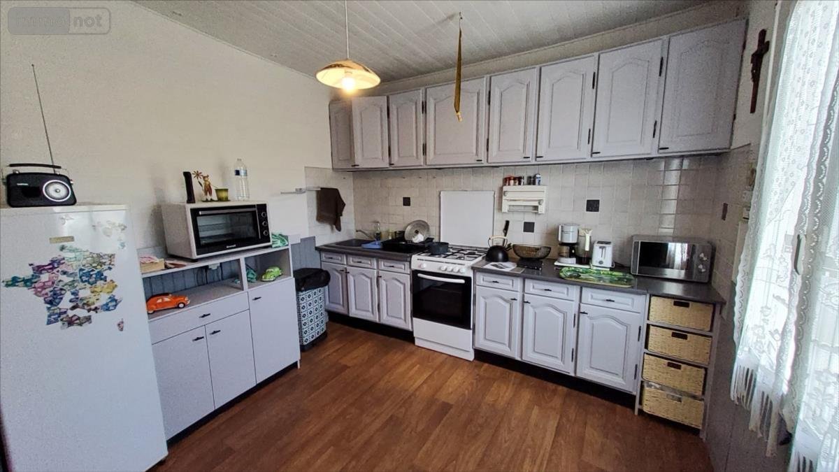 Au rez-de-chaussée: entrée, salon / salle à manger avec poêle à granulés, cuisine, wc, une chambreA l'étage: palier desservant trois chambres, salle d'eau avec wc, débarras