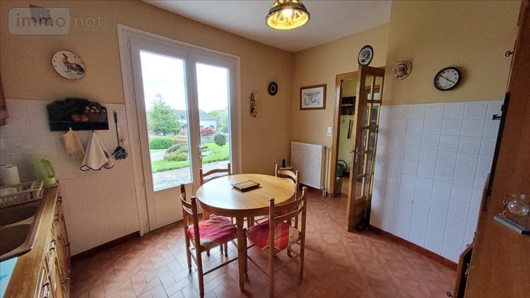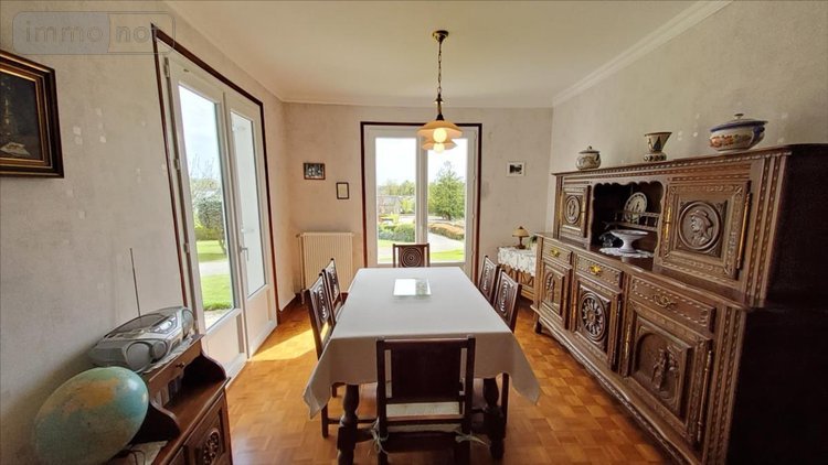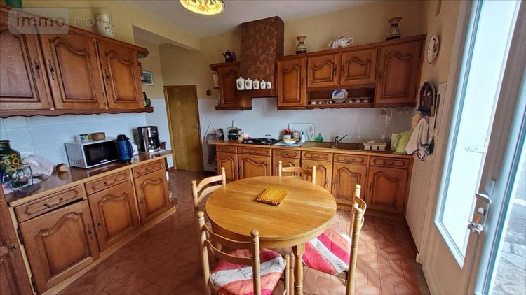 Au rez-de-chaussée: entrée, cuisine, salon / salle à manger avec cheminée, placards, wc, salle d'eau, une chambre, arrière cuisine et chaufferieA l'étage: palier, deux chambres, wc avec cabinet de toiletteGarage attenant