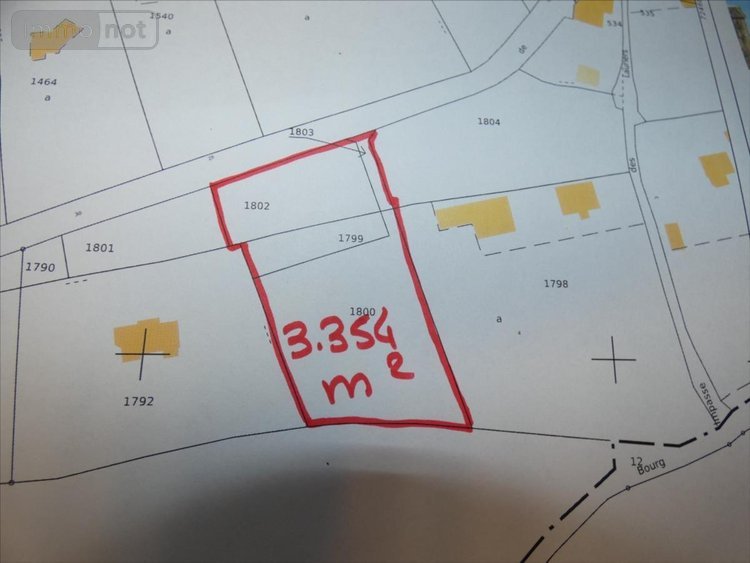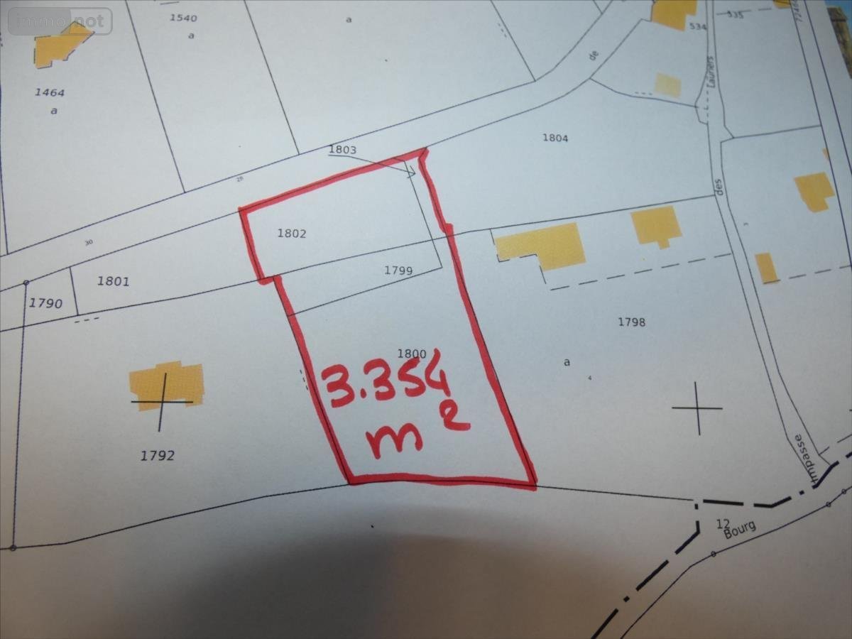 TERRAIN A BATIR de 3.354m² : idéalement situé à 500m du bourg et hors lotissement. Viabilisation à prévoir, réseaux à proximité. Assainissement individuel. Référence 2191.