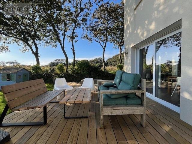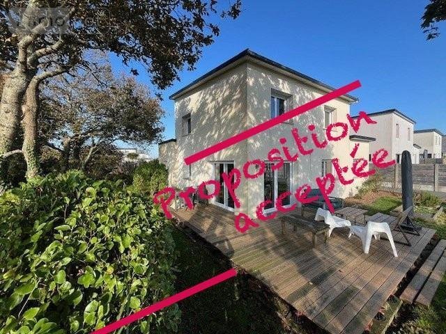 LOCMARIA-PLOUZANÉ - En vente uniquement à l'étude - Située à mi-chemin du bourg et des Plages - Quartier Résidentiel - Au calme, en fond d'impasse - Superbe Maison Contemporaine de 2013 d'environ 115m² Habitables - Entrée avec placard s'ouvrant sur une vaste pièce de vie avec cuisine aménagée équipée ouverte baignée de lumière avec ses larges ouvertures - cet espace donne accès direct à une grande terrasse bois exposée sud-ouest sans le moindre vis-à-vis - Un cellier adjacent à la cuisine vous permettra un espace de rangement supplémentaire - Une chambre avec salle d'eau privative complète le rez-de-chaussée et vous permettra une vie de plain-pied - A l'étage, vous trouverez 3 belles chambres ainsi qu'une salle de Bains (baignoire et douche) - un WC indépendant à chaque niveau - Un garage agrémente l'ensemble et vous permettra un espace de stockage appréciable - Le tout sur un Magnifique jardin arboré de plus de 700m² en exposition Sud-ouest qui vous permettra de profiter des longues soirées d'été à l'abri des regards indiscrets - Allée bitumée - Facilité de stationnement - Emplacement privilégié à proximité immédiate des écoles, commerces et arrêts de car - PRODUIT RARE ET RECHERCHÉ !!!