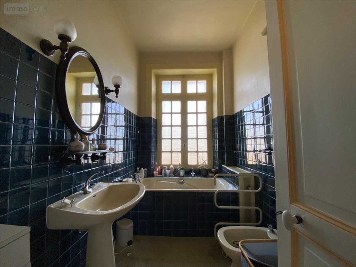 Au premier étage : quatre chambres, une salle de bains, une salle d'eau avec WC, un dégagement, un palier.