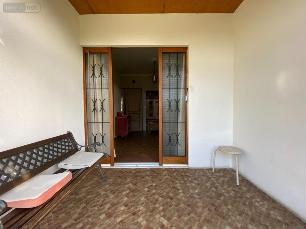 Maison comprenant une véranda, une entrée avec placard, trois chambres, un WC, une salle de bains, un séjour avec cheminée, une cuisine. Sous sol complet. Combles.