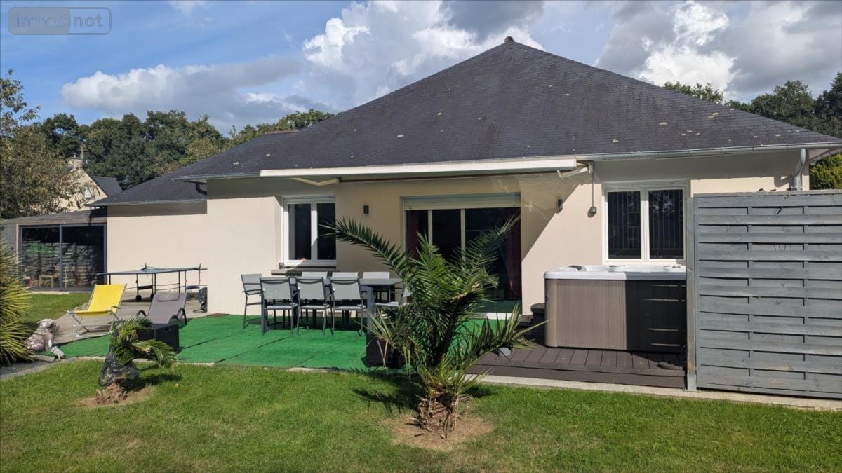 Salon-séjour avec poêle à granules ouvert sur une cuisine aménagée et équipée, arrière-cuisine, WC, salle de bains, quatre chambres dont une suite parentale avec douche et baignoire.