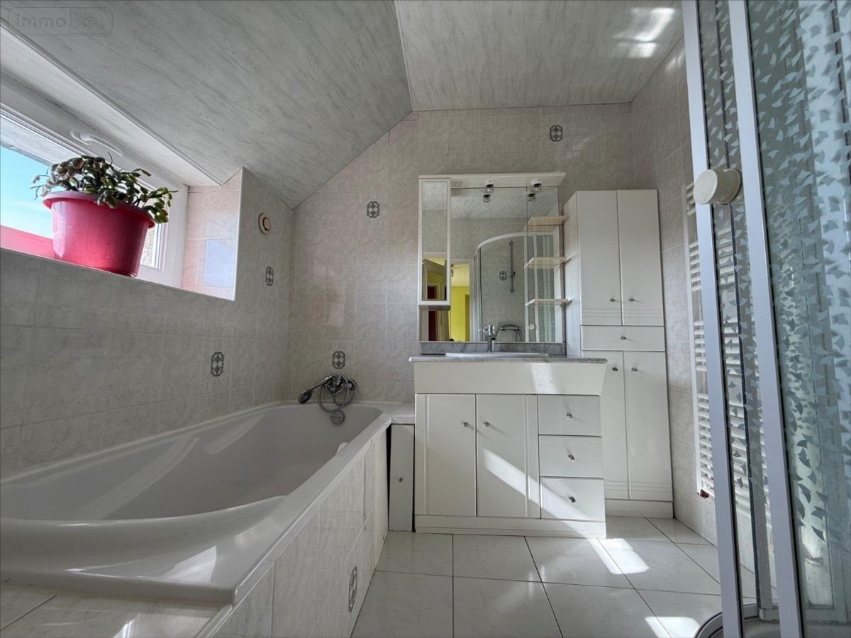 Au premier étage : un palier, une salle de bains avec douche, quatre chambres, un couloir, un placard, un grenier.