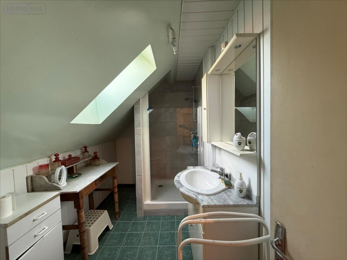 A l'étage, un palier, un grenier aménageable, une salle d'eau et deux chambres.