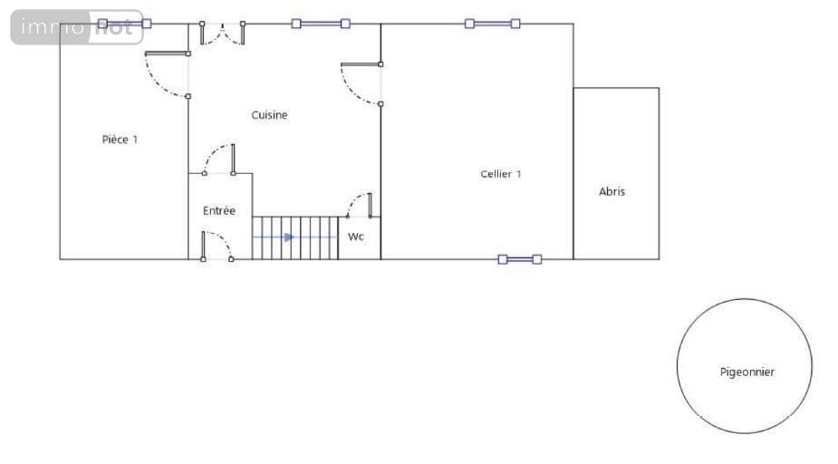 Au rez-de-chaussée : une entrée, une pièce de vie avec cheminée à foyer ouvert, un WC, une chambre et un cellier également équipé d'une cheminée à foyer ouvert.