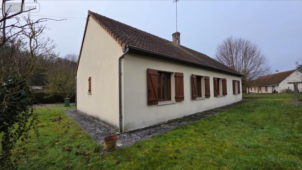 Pavillon offrant de plain-pied : entrée avec rangements, dégagement desservant un séjour traversant, une cuisine, trois chambres, une salle de bain et un wc séparé. Garage à la suite.Sur terrain clos d'environ 1 000 m².