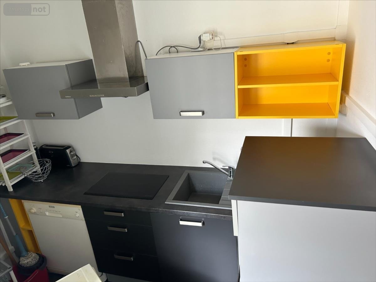 Au premier étage, un appartement une pièce de vie avec espace cuisine aménagée , une chambre, une salle d'eau avec WC.