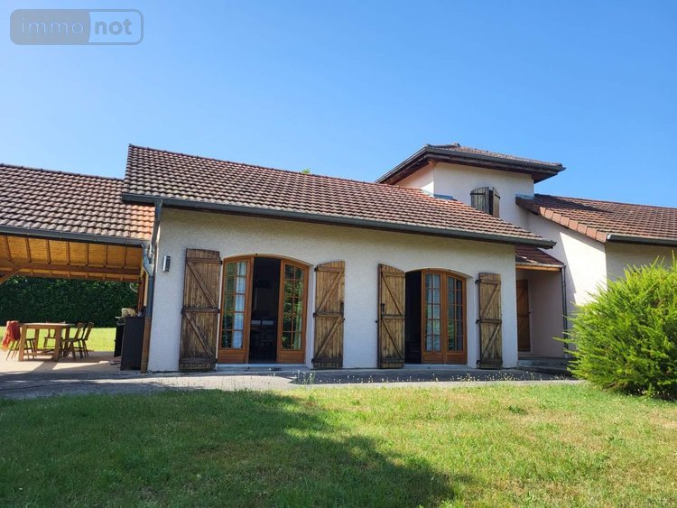 PEYRIEU, Maison individuelle - EN EXCLUSIVITE villa d'environ 124 m² située au calme et sans vis-à-vis. Trés fonctionnelle car de plain pied, elle offre une belle entrée qui dessert l'espace jour ainsi que l'espace nuit. Découvrez un grand salon/salle à manger et une cuisine équipée indépendante qui vous donnent accés sur un parc de 2190m². Aussi détendez-vous au bors de la piscine tout en profitant d'une terrasse couverte et d'une dépendance avec barbecue et four. Pour la partie nocturne, vous disposez de trois chambres donnant sur l'extérieur ainsi qu'une salle de bains et un dressing. - Classe énergie : D - Classe climat : D - Montant estimé des dépenses annuelles d'énergie pour un usage standard : 2970 à 4070 € (base 2021) - Prix : 460 000 €, Hon. Négo charge Vdr. - Réf : 084/871