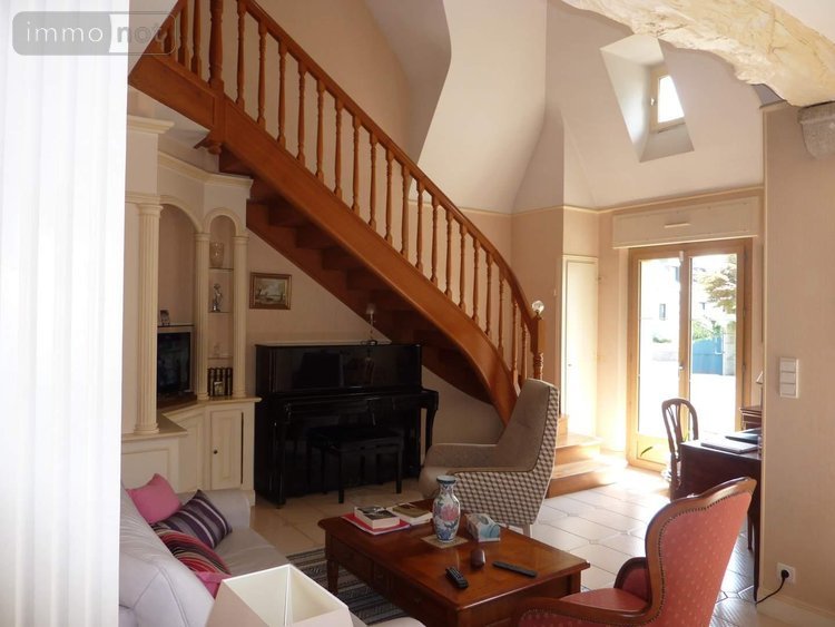 Sur la commune de DINAN,venez découvrir le charme de cette maison individuelle en granit jaune comprenant au rez-de-chaussée :un hall d'entrée avec placard, un salon, une salle à manger, une chambre, une salle d'eau, wc. A l'étage: un palier-mezzanine, trois chambres, une salle de bains, wc. Un garage attenant comprenant une cave. Un chalet en bois. Dans un lotissement au coeur de DINAN, sur une parcelle de 1240 m² paysagée et arborée, cette maison bénéficie des tous les avantages de sa localisation : commerces, services, Dinamo et écoles à proximité. - Classe énergie : D - Classe climat : D - Montant estimé des dépenses annuelles d'énergie pour un usage standard : 1950 à 2680 € (base 2021) - Prix Hon. Négo Inclus : 465 750 € dont 3,50% Hon. Négo TTC charge acq. Prix Hors Hon. Négo :450 000 € - Réf : 038/239