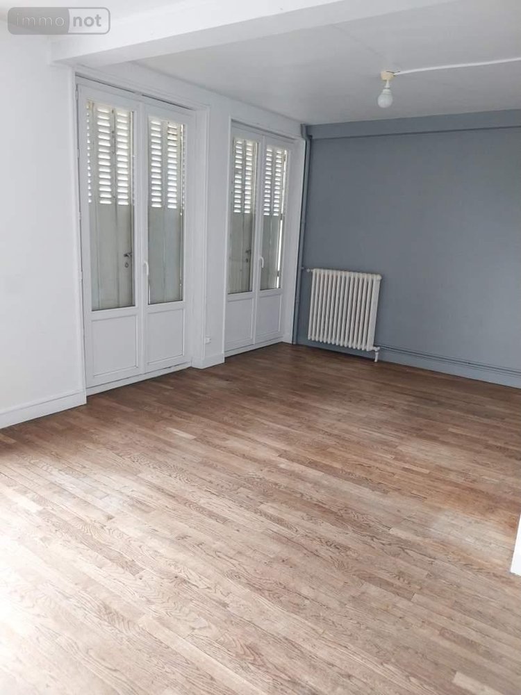 PONT AUDEMER, T3 S. Hab. : 64m² - Centre ville de PONT-AUDEMER, au 2ème étage sans ascenceur, appartement 3 pièces composé d'une entrée, un séjour avec cheminée décorative, une cuisine aménagée, deux chmabres, une salle de bains avec wc, une terrasse.