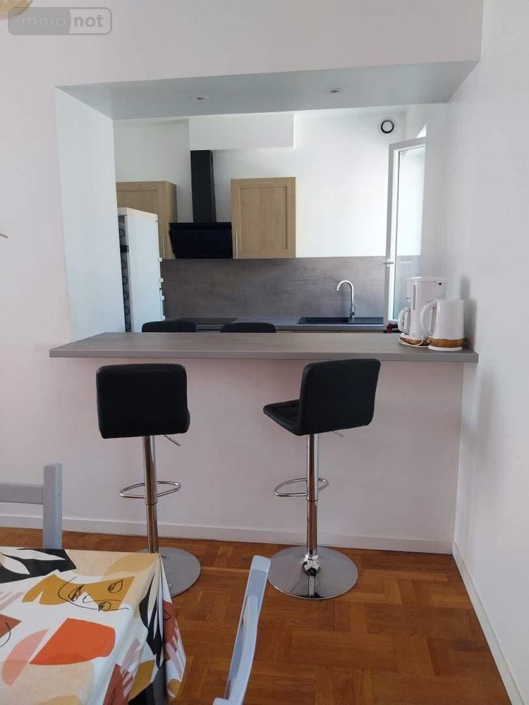 PONT AUDEMER, T3 S. Hab. : 65m² - Situé en plein coeur de PONT-AUDEMER, au premier étage, très bel appartement climatisé entièrement meublé composé d'une entrée, un sejour, une cuisine ouverte équipée, deux chambres, une salle de bains, wc séparés. Un espace buanderie au rez-de chaussée.