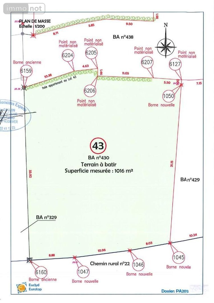 Parcelle viabilisée - Prix Hon. Négo Inclus : 81 966 € dont 4,80% Hon. Négo TTC charge acq. Prix Hors Hon. Négo :78 212 € - Réf : 065/373