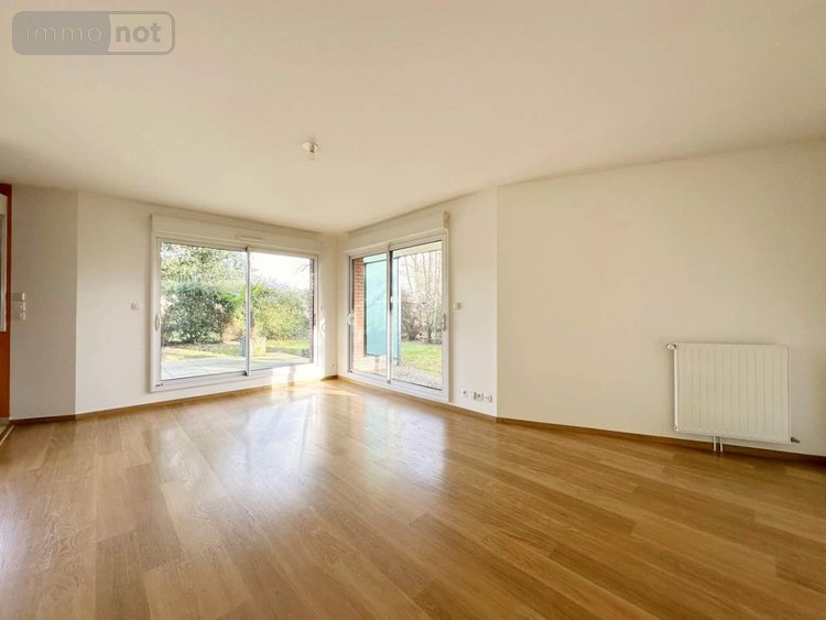 Une entrée avec placard desservant une cuisine aménagée et en partie équipée (hotte, plaque de cuisson induction et four) semi-ouverte sur salon/séjour donnant sur une terrasse de 17 m² et un jardin de 103,60 m², un cellier/buanderie, deux chambres avec placard, une salle d'eau, WC indépendant avec lave-mains.