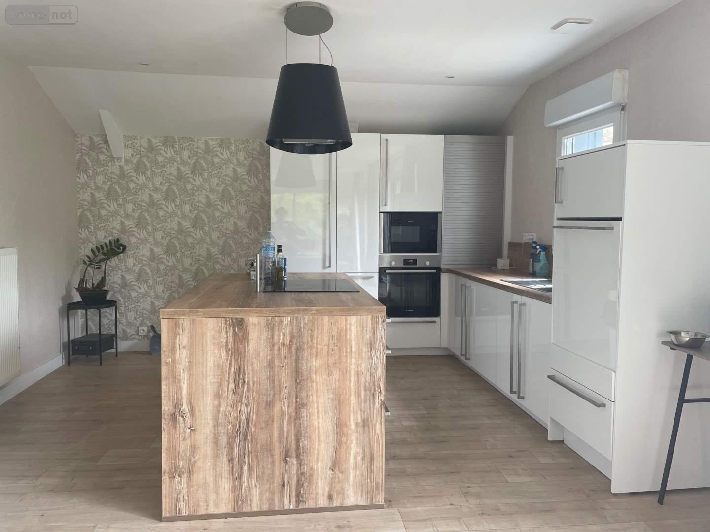 cuisine aménagée et équipée ouverte sur séjour, salon, WC, buanderie et chaufferie.