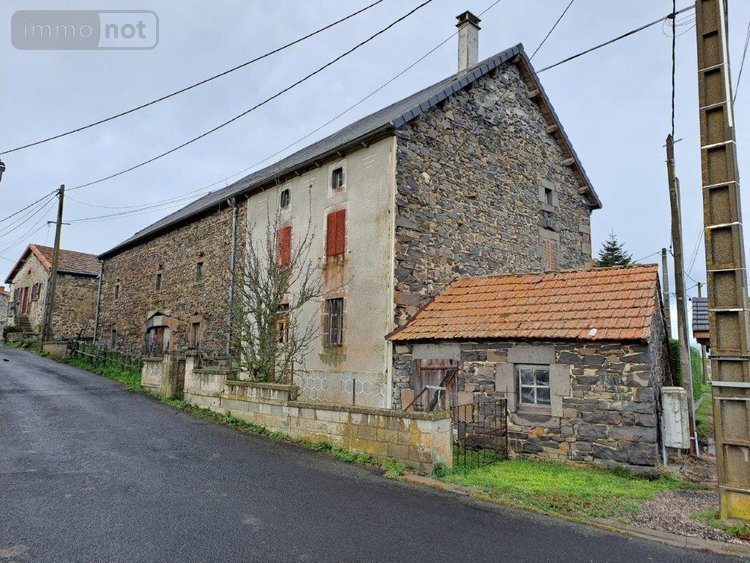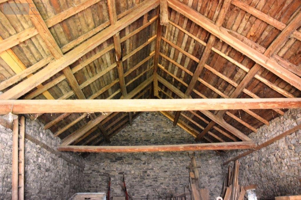 Maison : SS : cave ; RDC : entrée sur séjour avc chem + point d'eau, 1 pièce derrière avc WC ; 1er : palier, grande ch en L, 2ème ch,  espace dégagemt ; Grenier. * Étable/grange attenante avc cave voutée en bout + auvent. * Garage attenant / 2 niveaux. * Four attenant.
