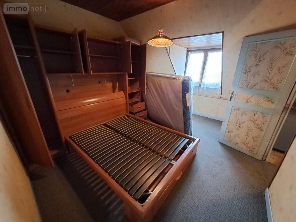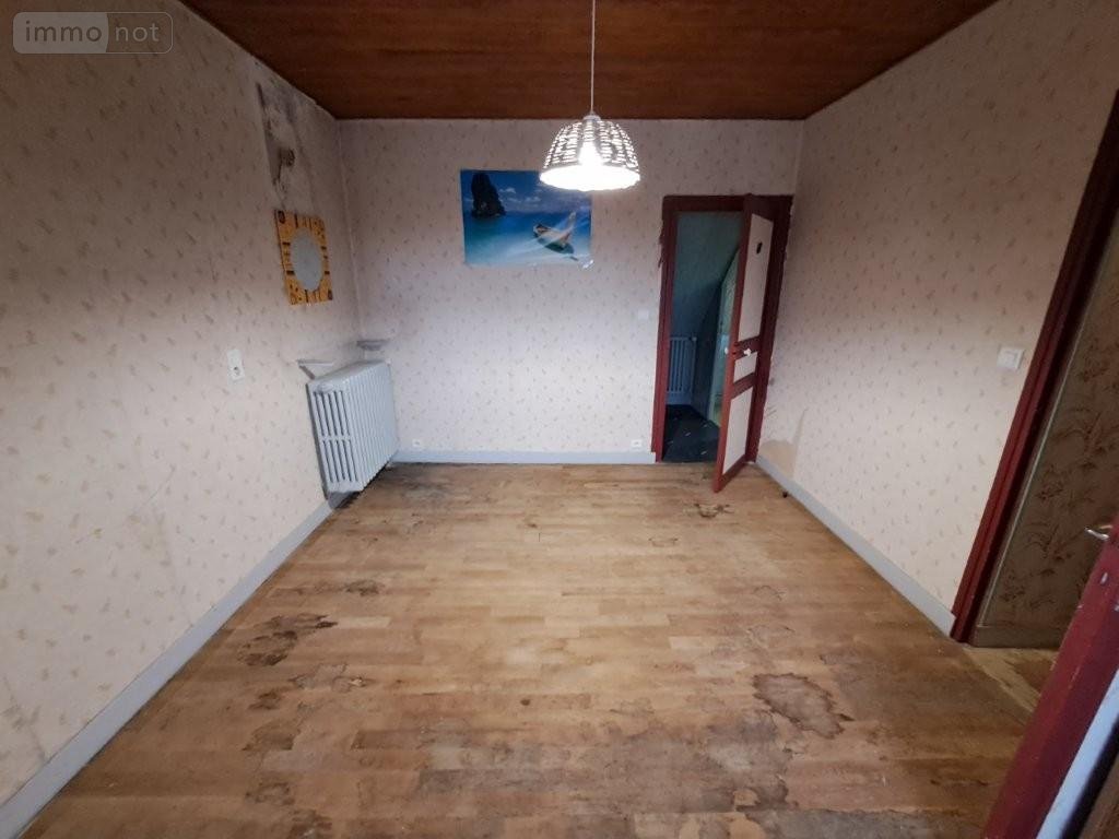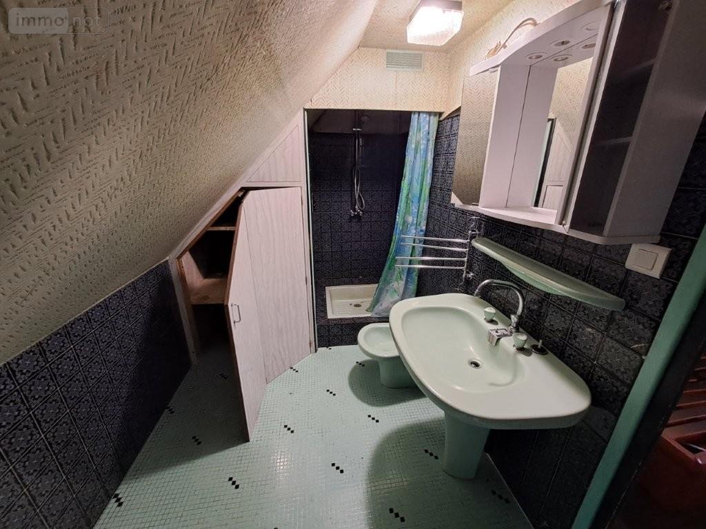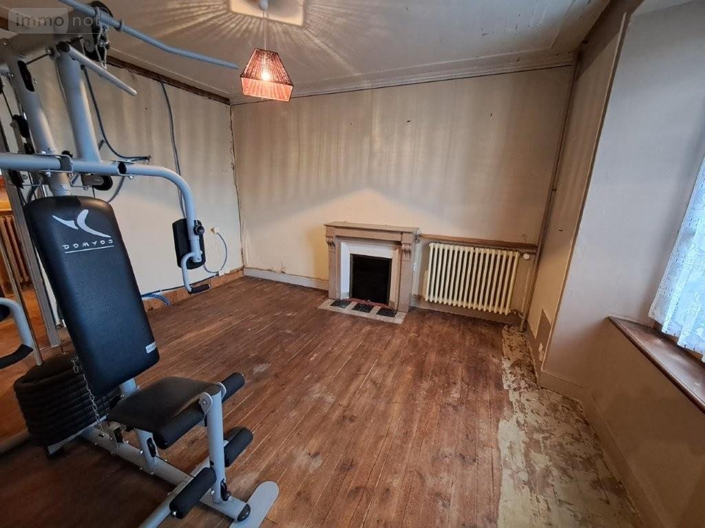 Maison : RDC : entrée, cuisine avec cheminée (poêle à granulés), cave à l'arrière avec accès terrasse et terrain, SAM/salon avec cheminée ; 1° : accès extérieur sur le jardin derrière, WC, palier, 2 chambres (1 avec salle d'eau et autre avec cabinet de toilettes) ; 2° : palier, 2 chambres avec partie grenier / débarras, WC ; Combles . * Garage avec partie buanderie et chaudière fioul récente (- de 10 ans). Jardin attenant.
